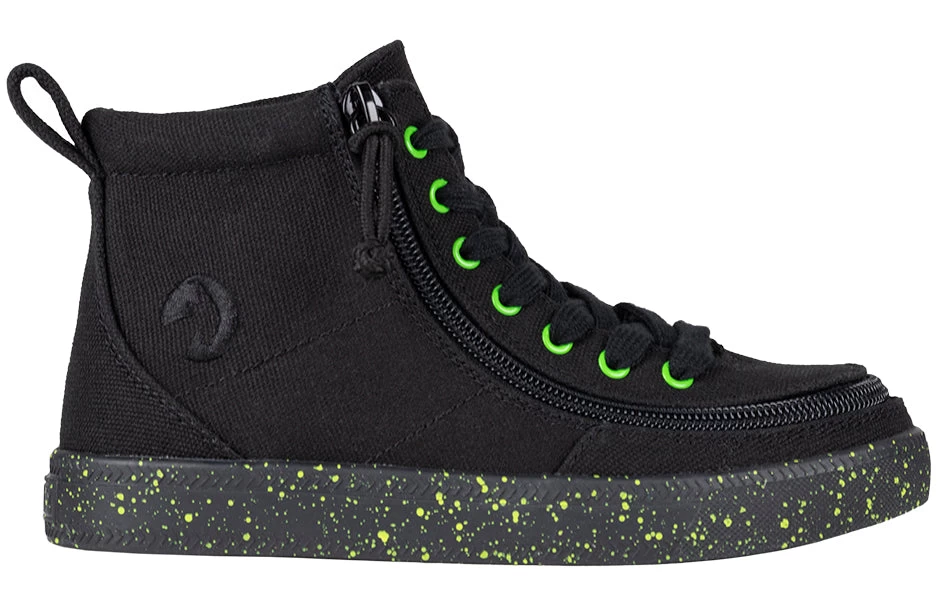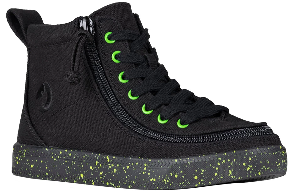 A classic silhouette with some added speckles thrown in, your kiddo is going to love their Black/Green Speckle BILLY Classic Lace High Tops. This silhouette features the full wrap zipper allowing the wearer unobstructed entry. Step in, zip up, and get after the day!