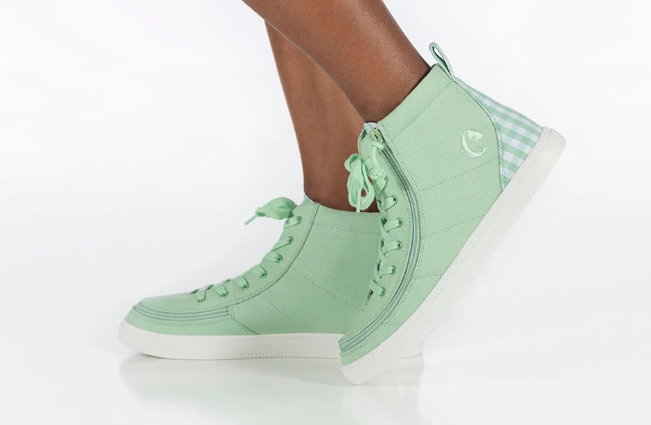 A little gingham in your wardrobe? Yes please! These Green Gingham BILLY Classic Lace High Tops bring a fresh look to a classic style.Â