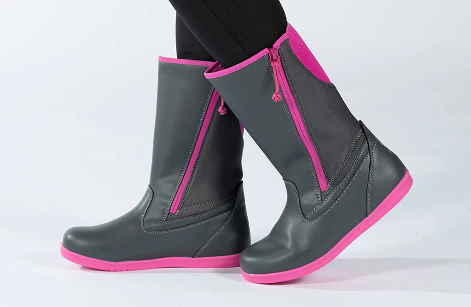 No matter the weather, it is great to stay active. And what better way to keep the feet dry than with the Grey BILLY Rain Boots! These water resistant beauts feature two straight zippers letting you step in and out easier and get you out and about faster. Enjoy!