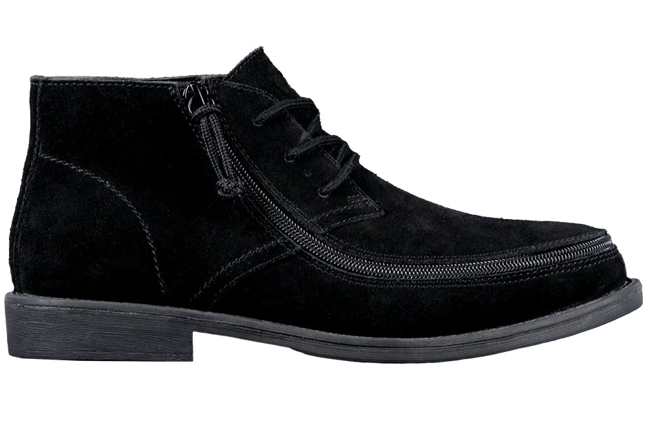Looking for function in men’s fashion? Then look no further! These stylish Chukkas tout a wraparound zipper making donning and doffing simple. No more stuffing your feet into shoes—drop your foot in unobstructed and continue on to your next success. These real leather gems are a must for your wardrobe. Sizes range from US Men’s 7 to US Men’s 14, with 1/2 sizes through size 12.