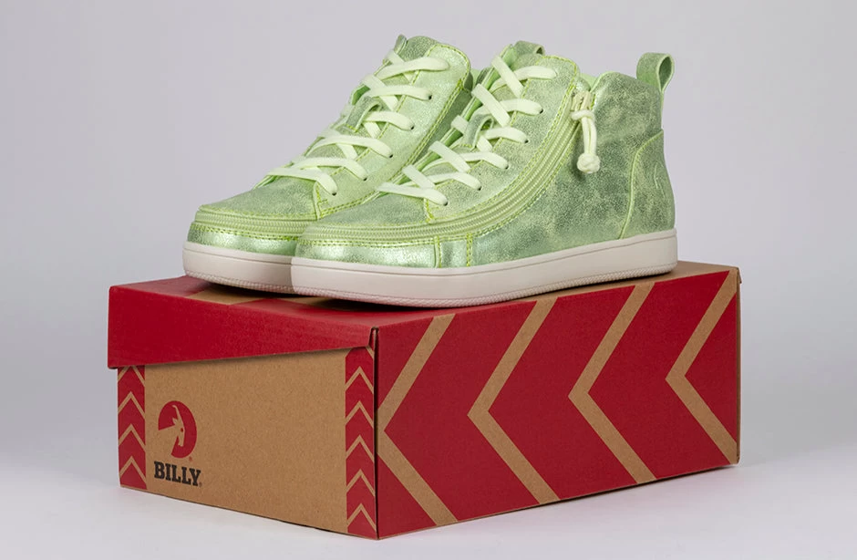 A classic look with universal style. Combining fashion with function, Step In! to your shoes unobstructed in seconds. These faux leather Women’s Cucumber Green BILLY Sneaker Lace Mid Tops have a soft feel and padded collar for extra comfort. Use the functional laces to get the fit right, and then use the wraparound zipper henceforth. And with the multi-density foam and silica gel insoles, you’ll have cushion where you want it and support where you need it. Enjoy!
