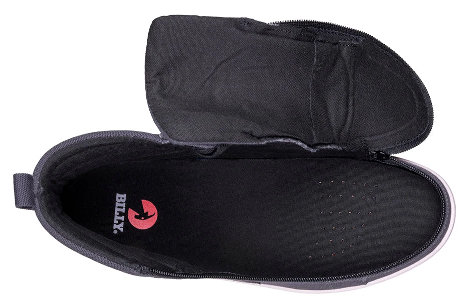 Inspired by a core-skate look, the Men’s Charcoal/Black BILLY CS Sneaker High Tops are sure to deliver. These trending kicks embrace nostalgia, yet remain true to current style. Coming with functional laces for a custom fit, removable insoles for added depth, and a wraparound zipper for unmatched convenience, you’re going to feel good when you Step In!