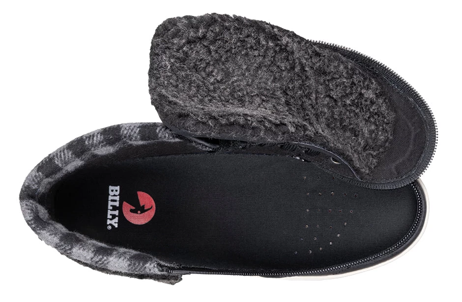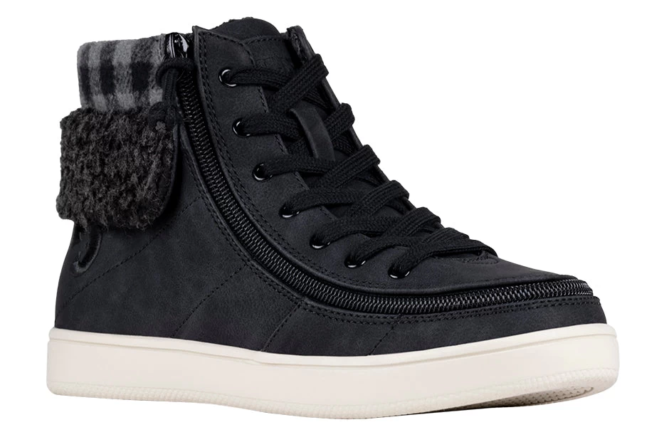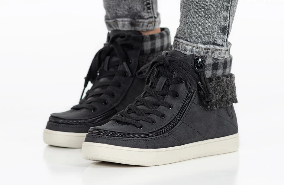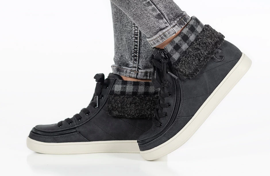 A trendy look to the Classic High Top, the Women’s Black/Charcoal BILLY Cuffs are sure to receive compliments. Combining fashion with function, Step In! unobstructed in seconds. These flannel and faux suede kicks have a soft feel and fur collar for extra comfort. Use the functional laces to get the fit right, and then use the wraparound zipper henceforth. And with the multi-density foam and silica gel insoles, you’ll have cushion where you want it and support where you need it. Enjoy!