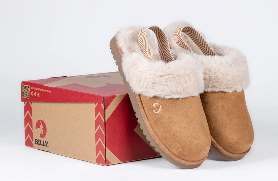 Nothing gets more cozy for the feet than the Women’s Chestnut BILLY Cozy Sling Scuff slippers. Easy on. Easy off. They are perfect for those chilly moments around the house. Enjoy!Â